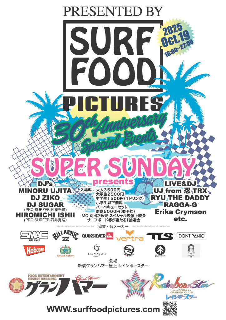 SUPER SUNDAY Presents SURF FOOD 30Th ANNYVERSARY !