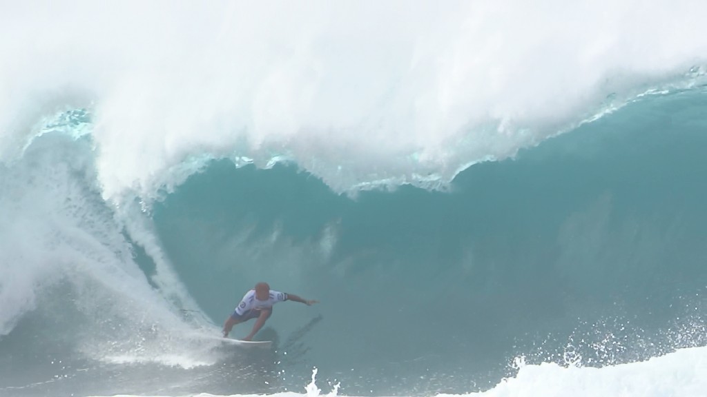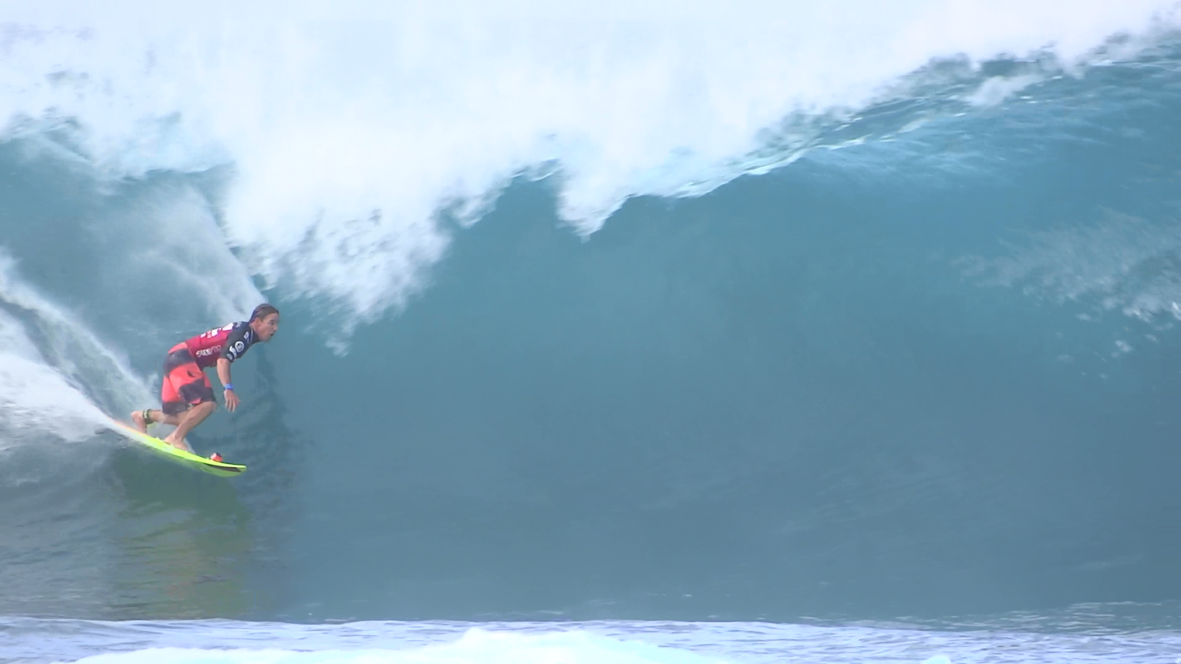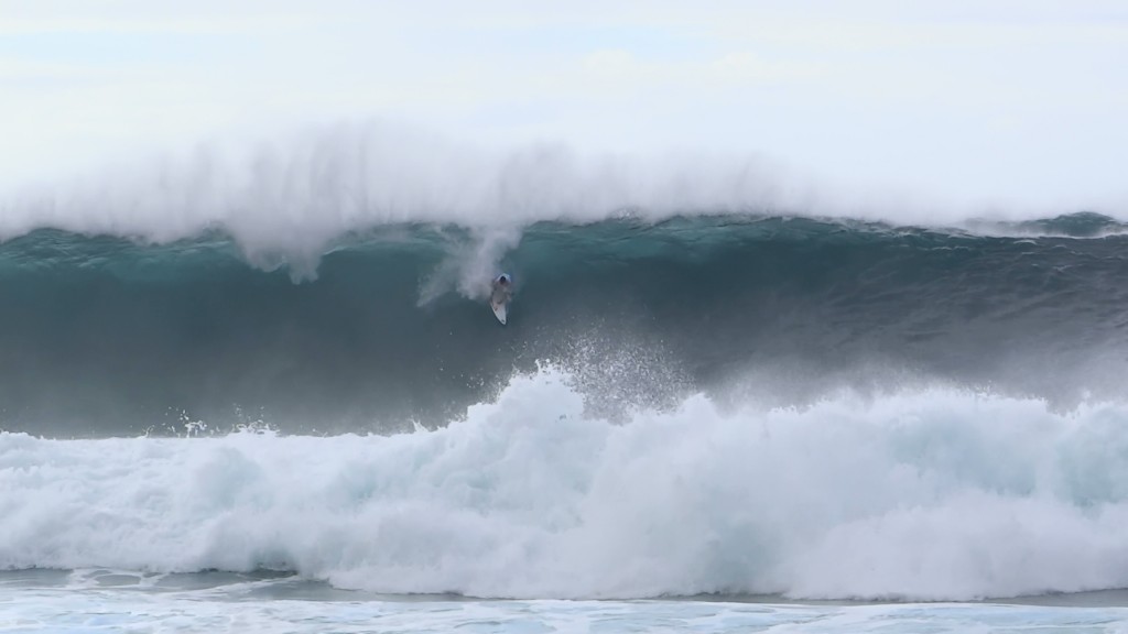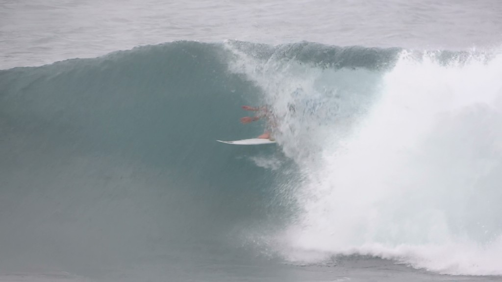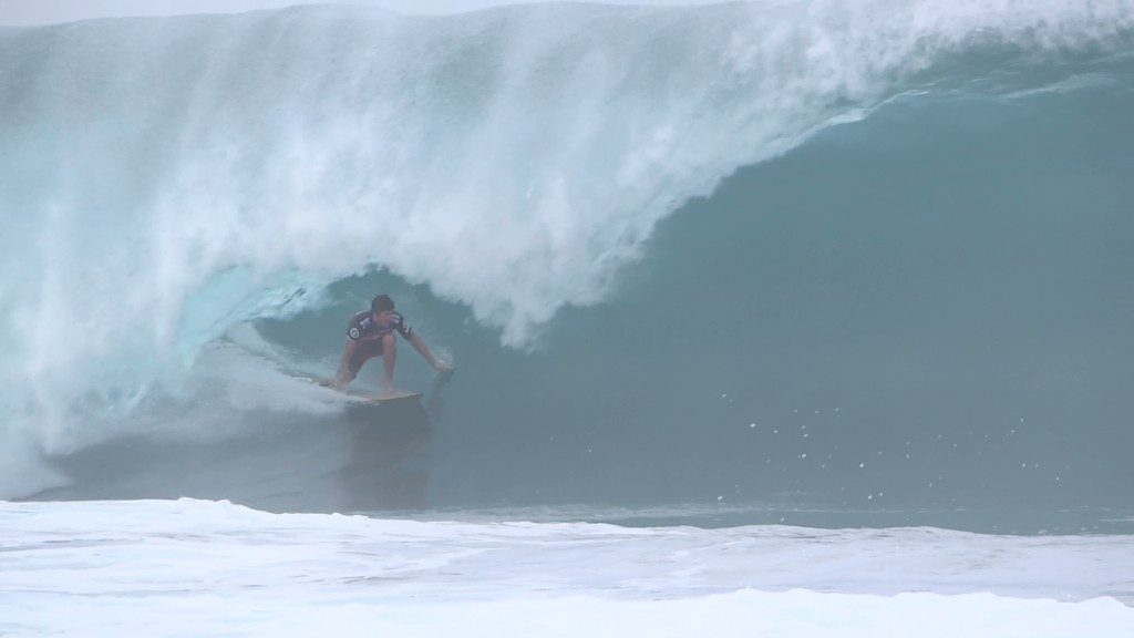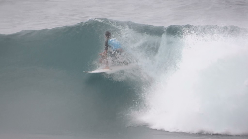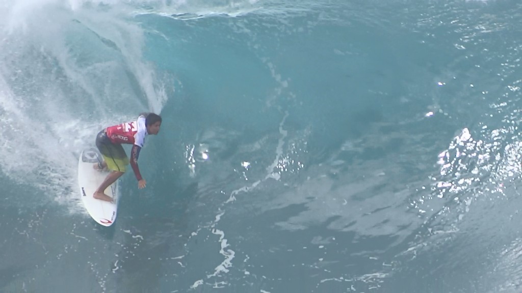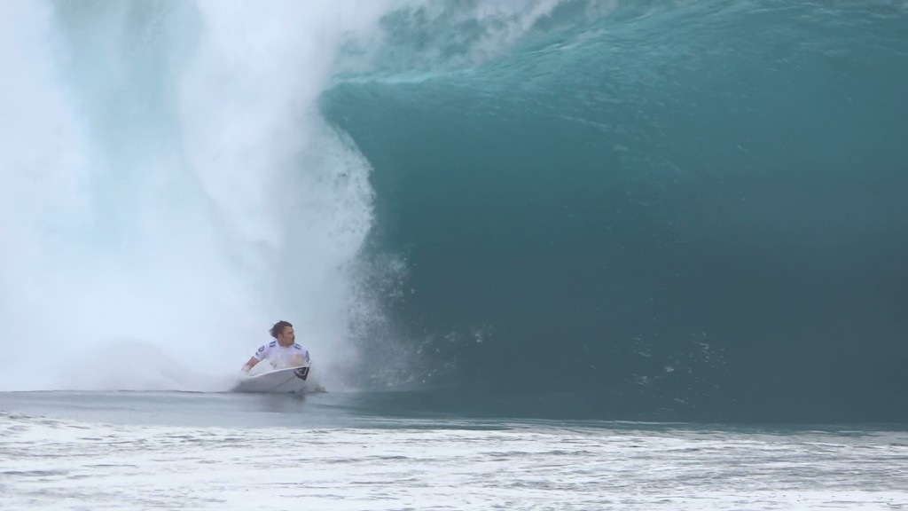 チューブの出口でケリーの折れたボードに当たってこけるミラクルで笑わせてくれた