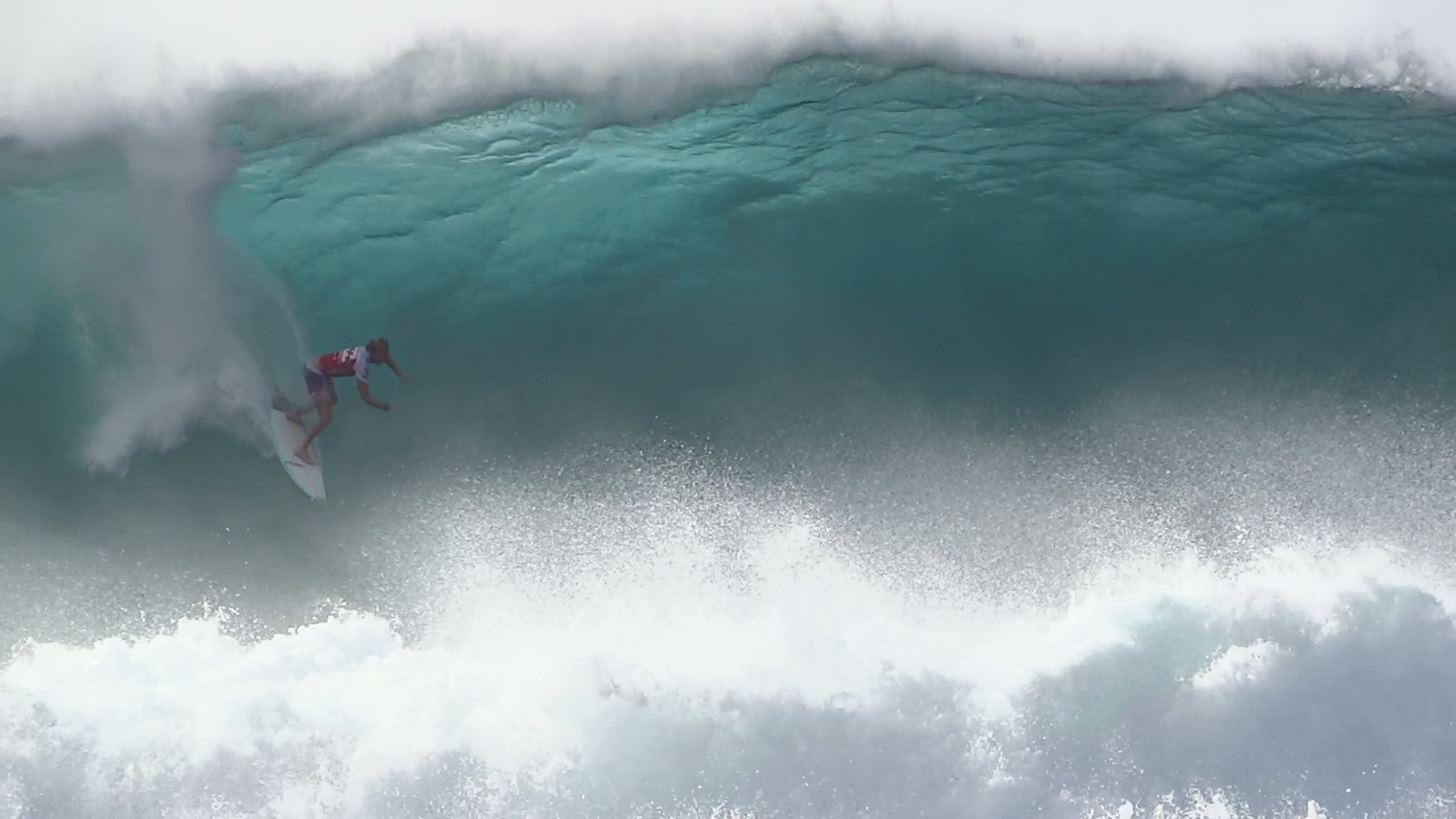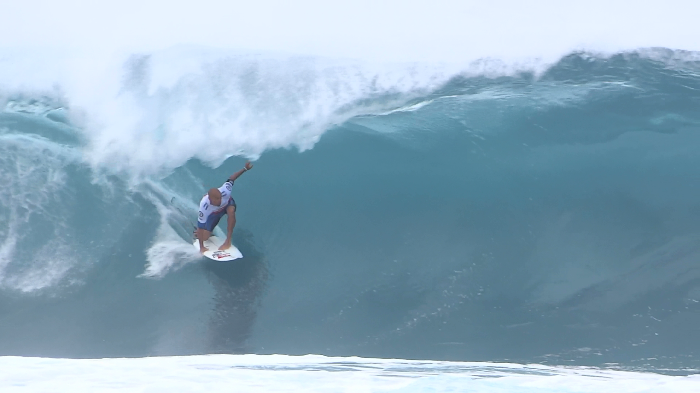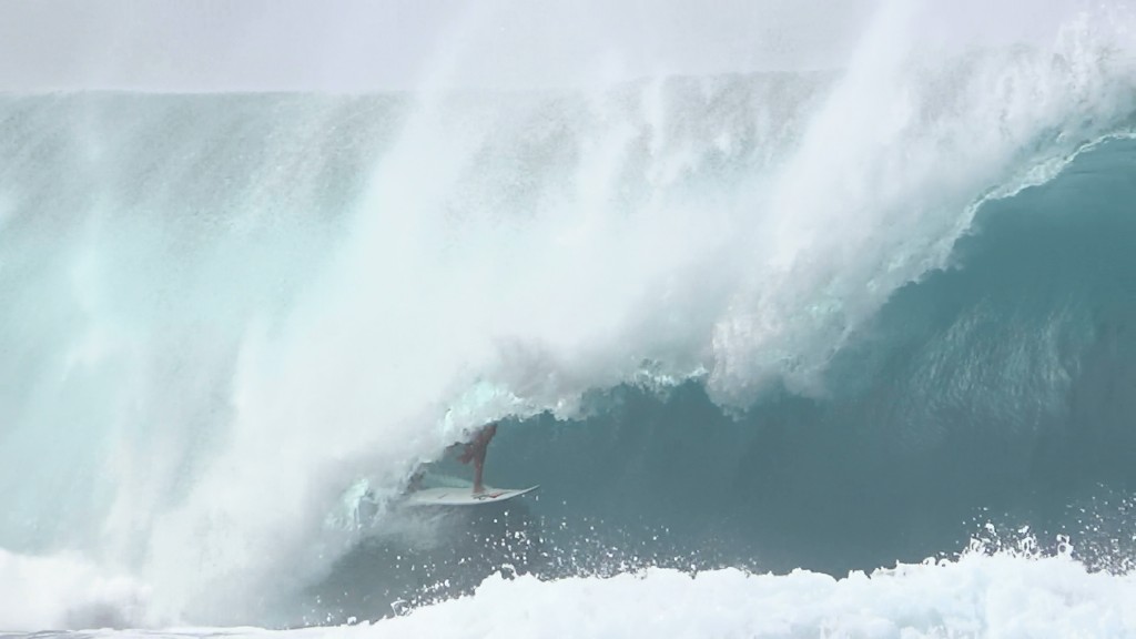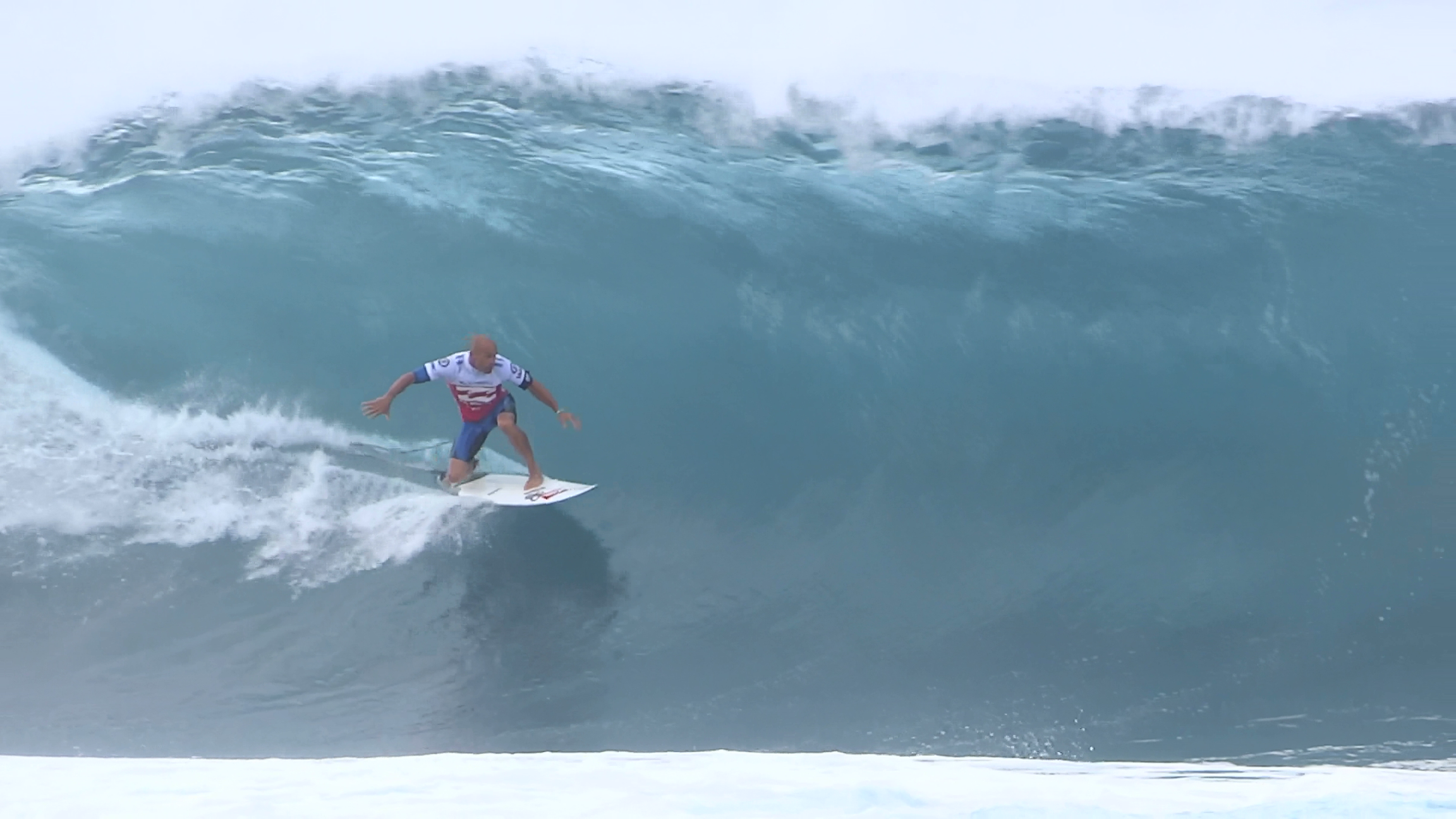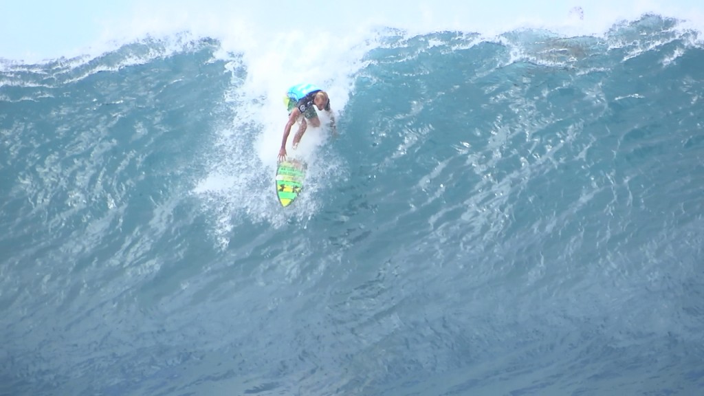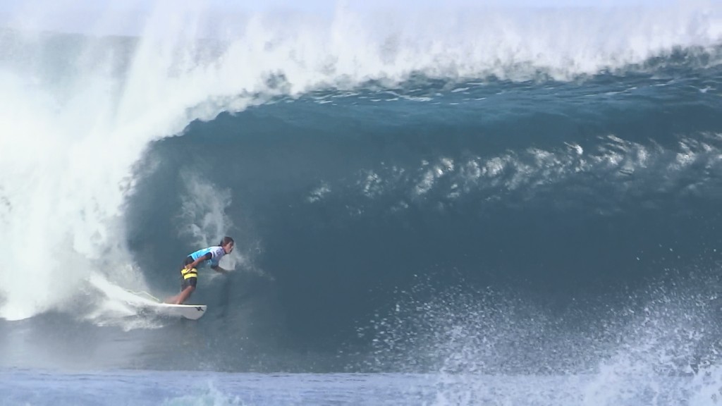 チューブの出口でケリーの折れたボードに当たってこけるミラクルで笑わせてくれた