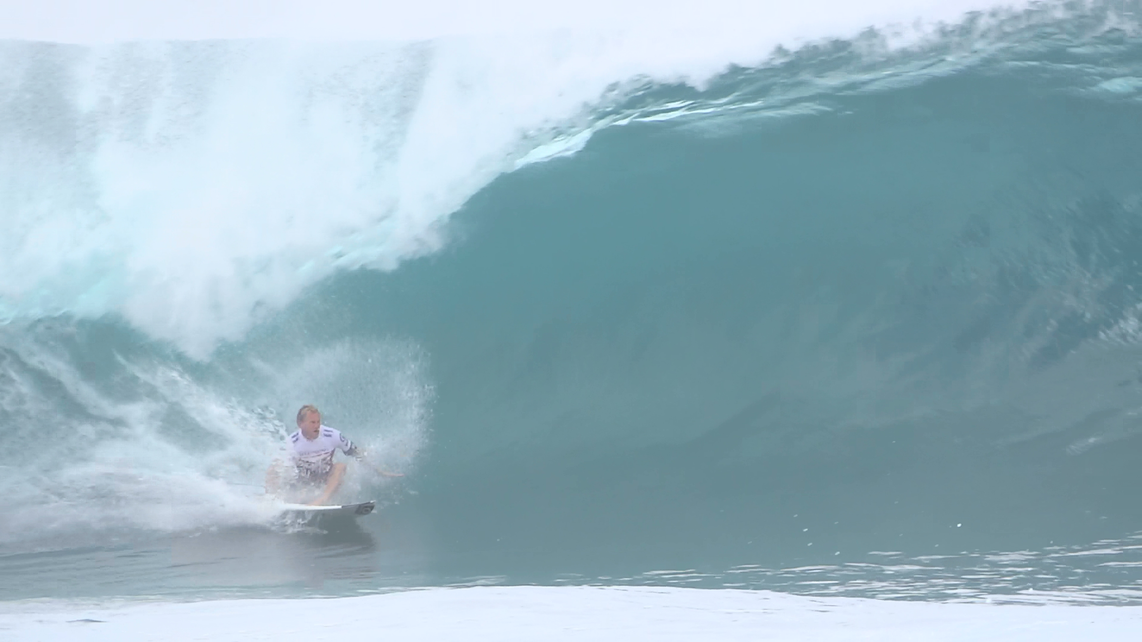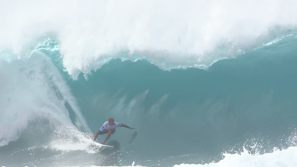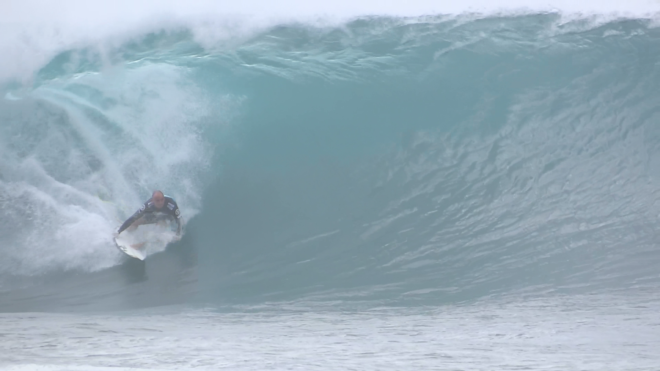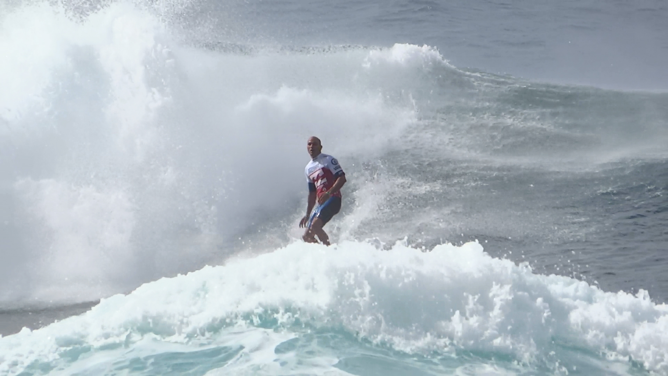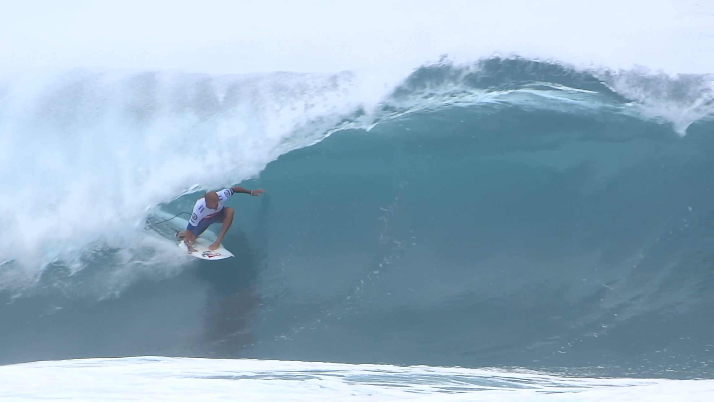 チューブの出口でケリーの折れたボードに当たってこけるミラクルで笑わせてくれた