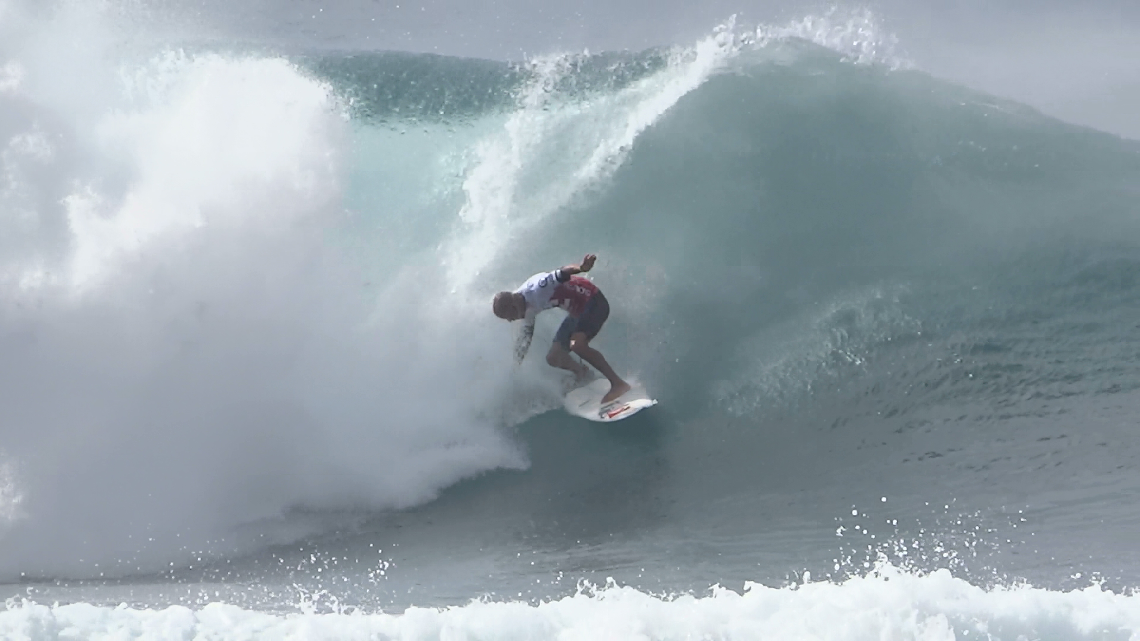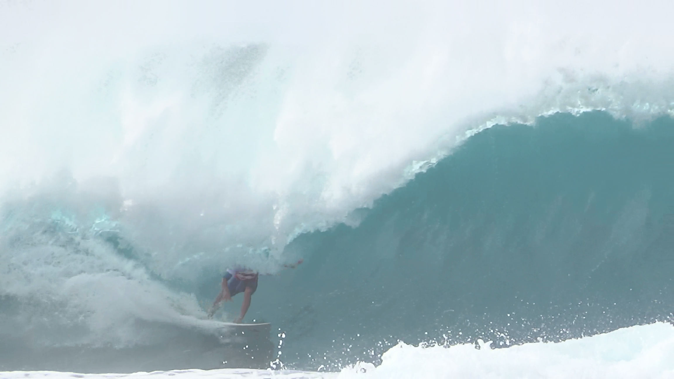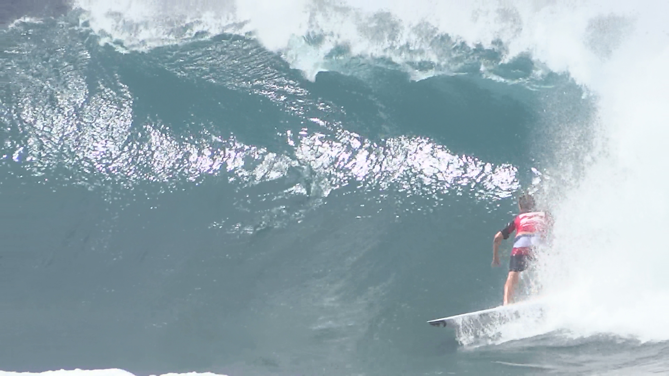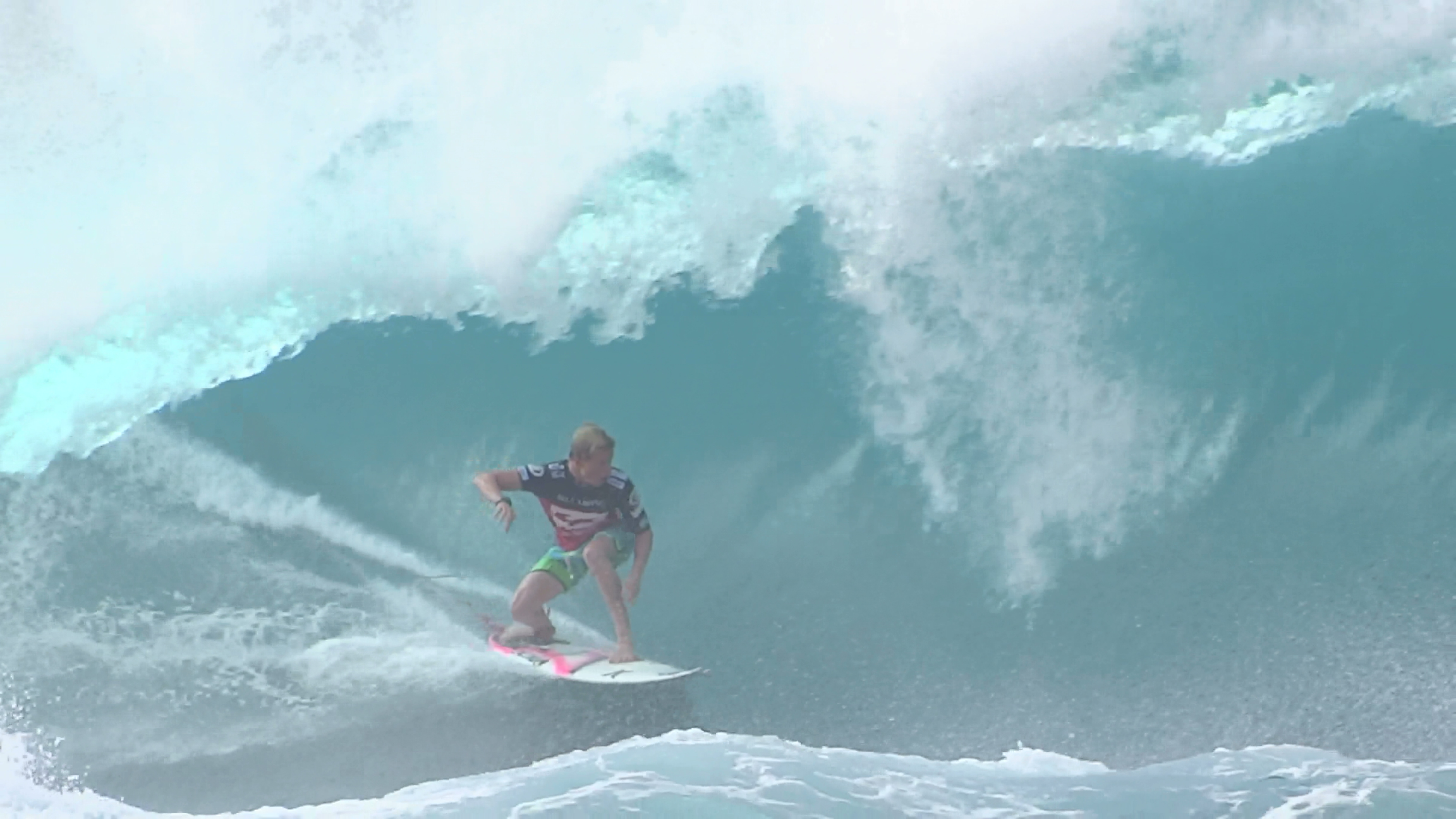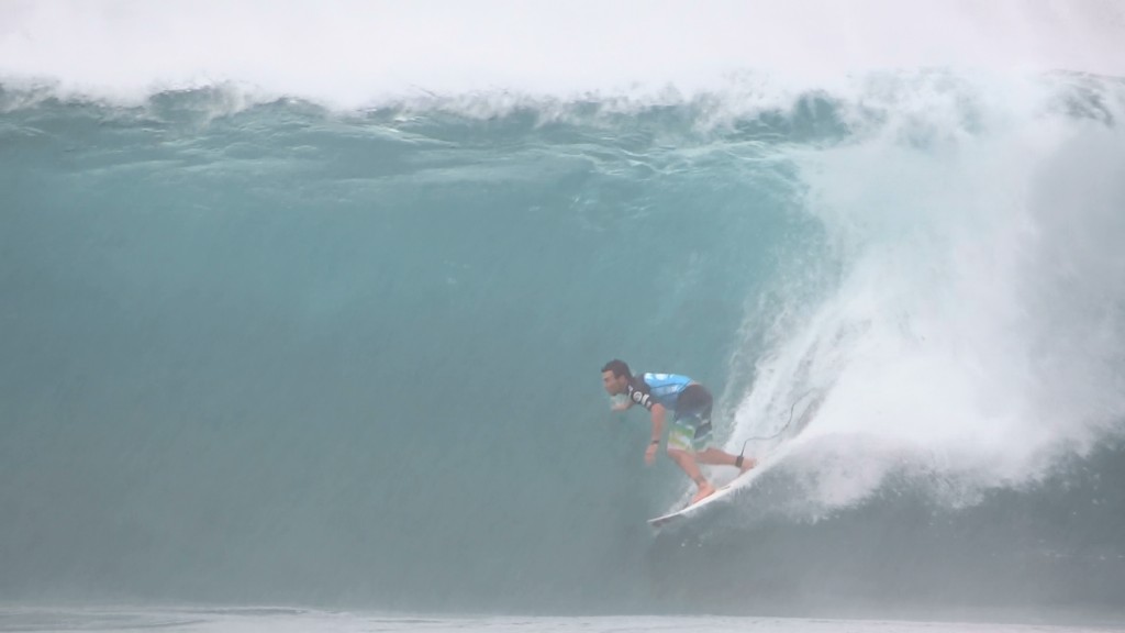 チューブの出口でケリーの折れたボードに当たってこけるミラクルで笑わせてくれた