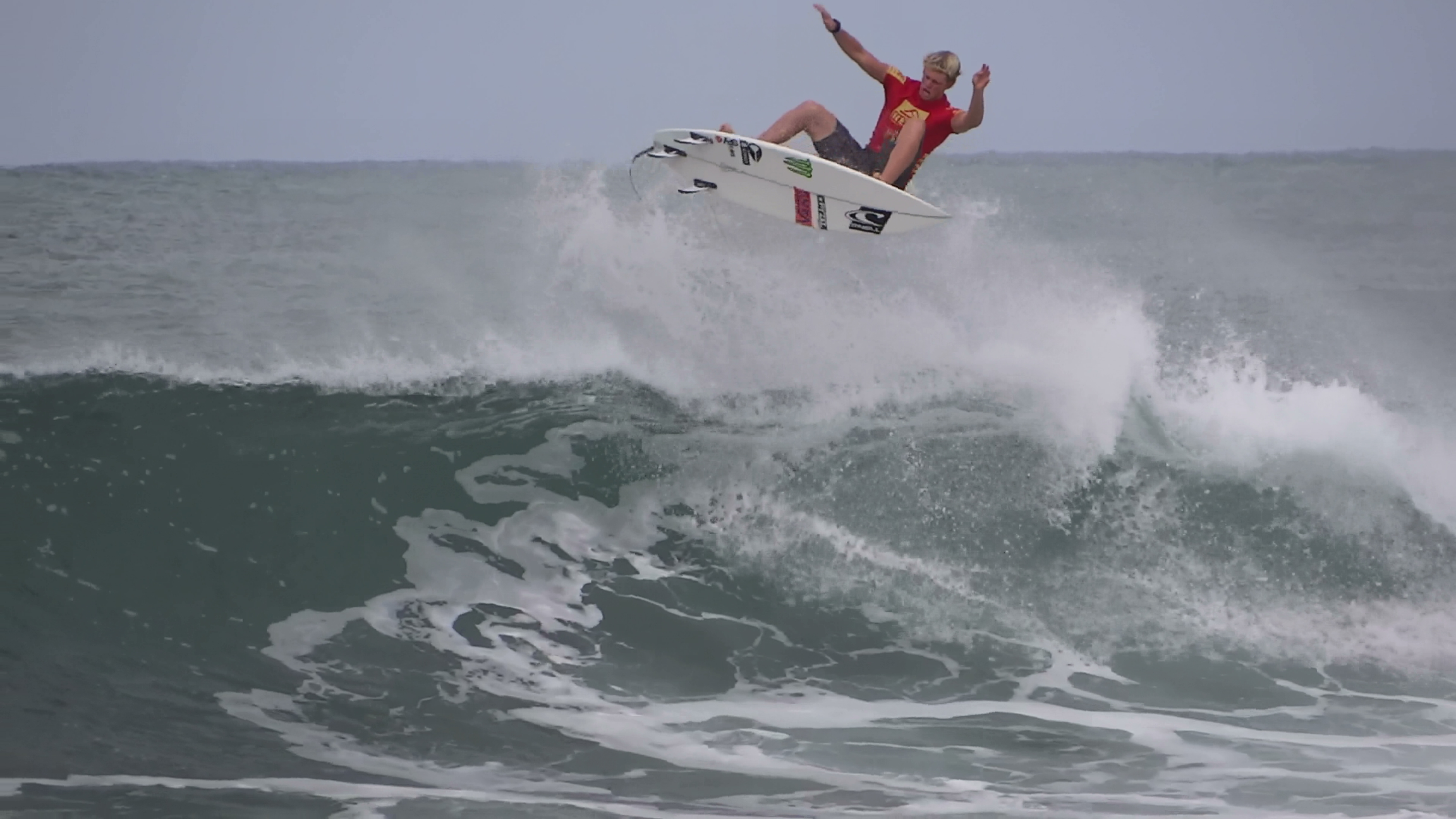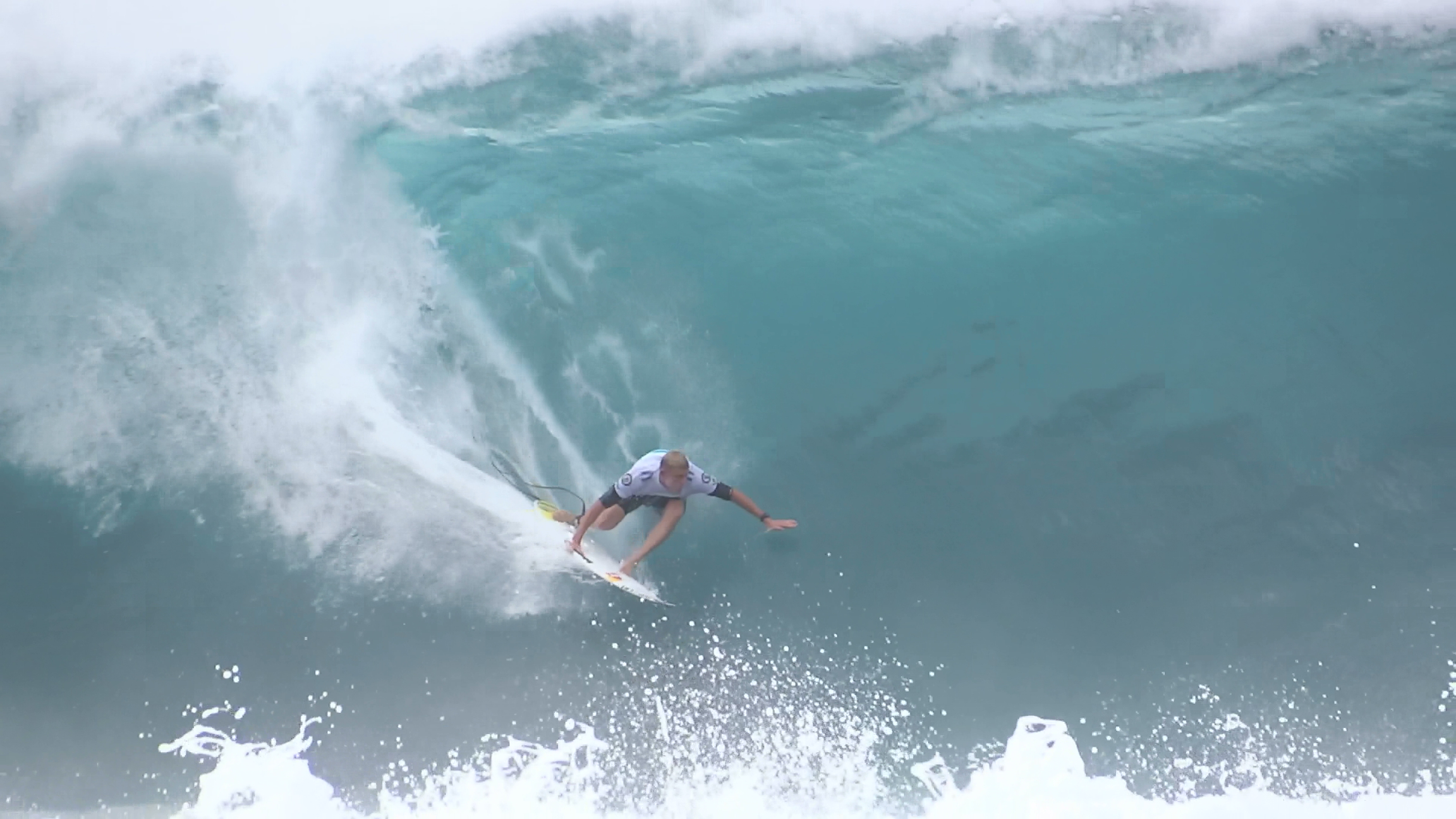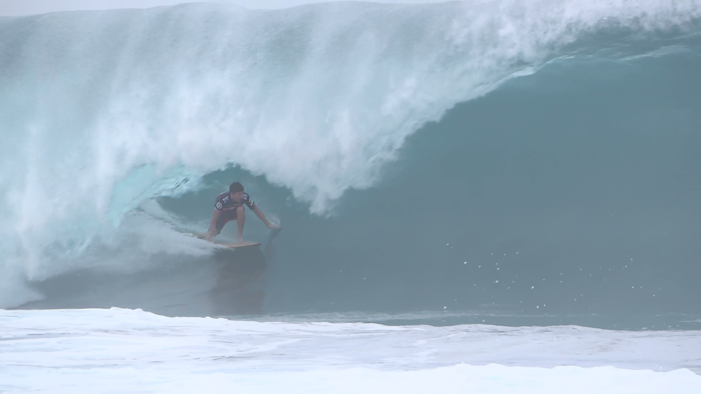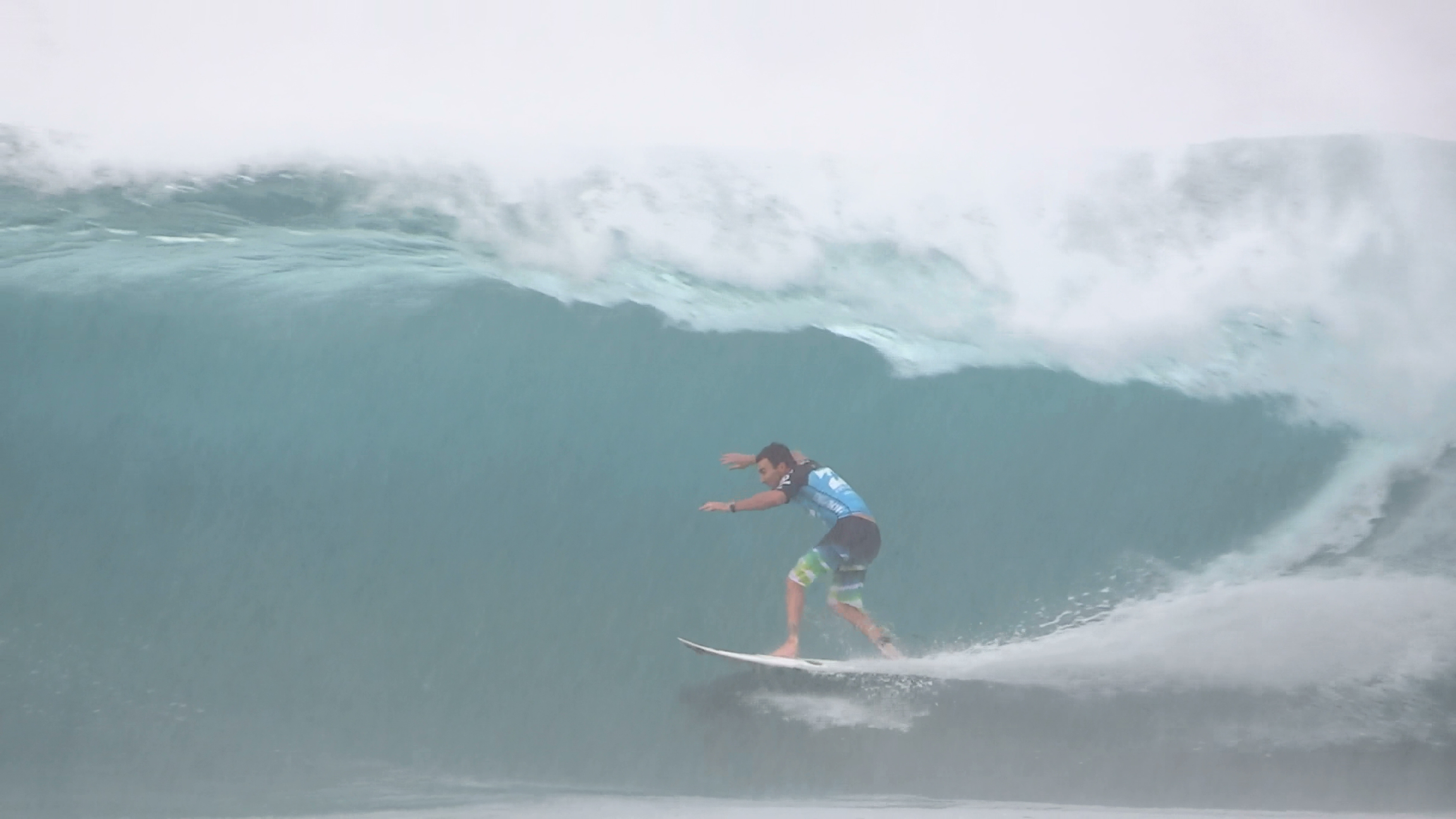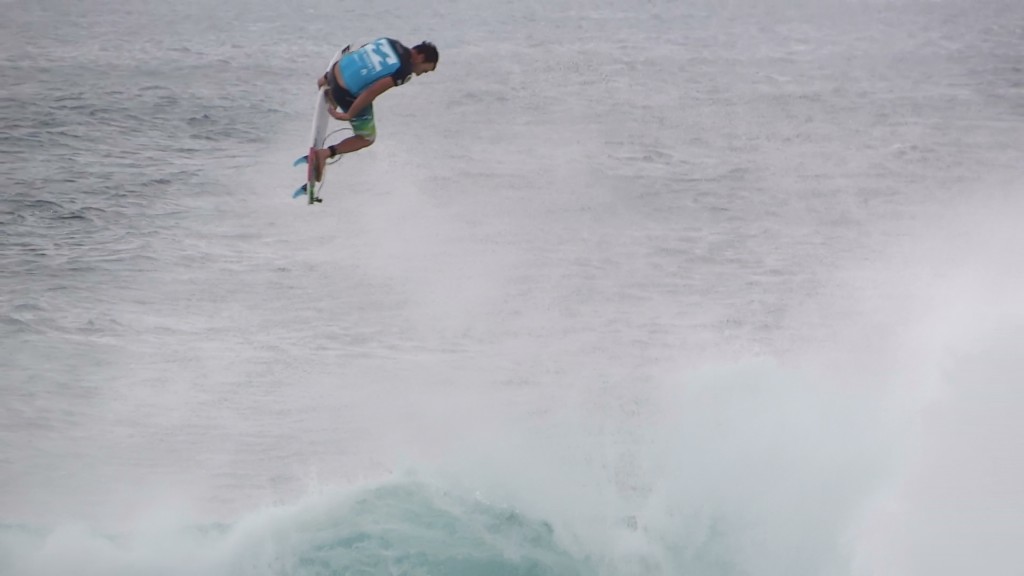 チューブの出口でケリーの折れたボードに当たってこけるミラクルで笑わせてくれた